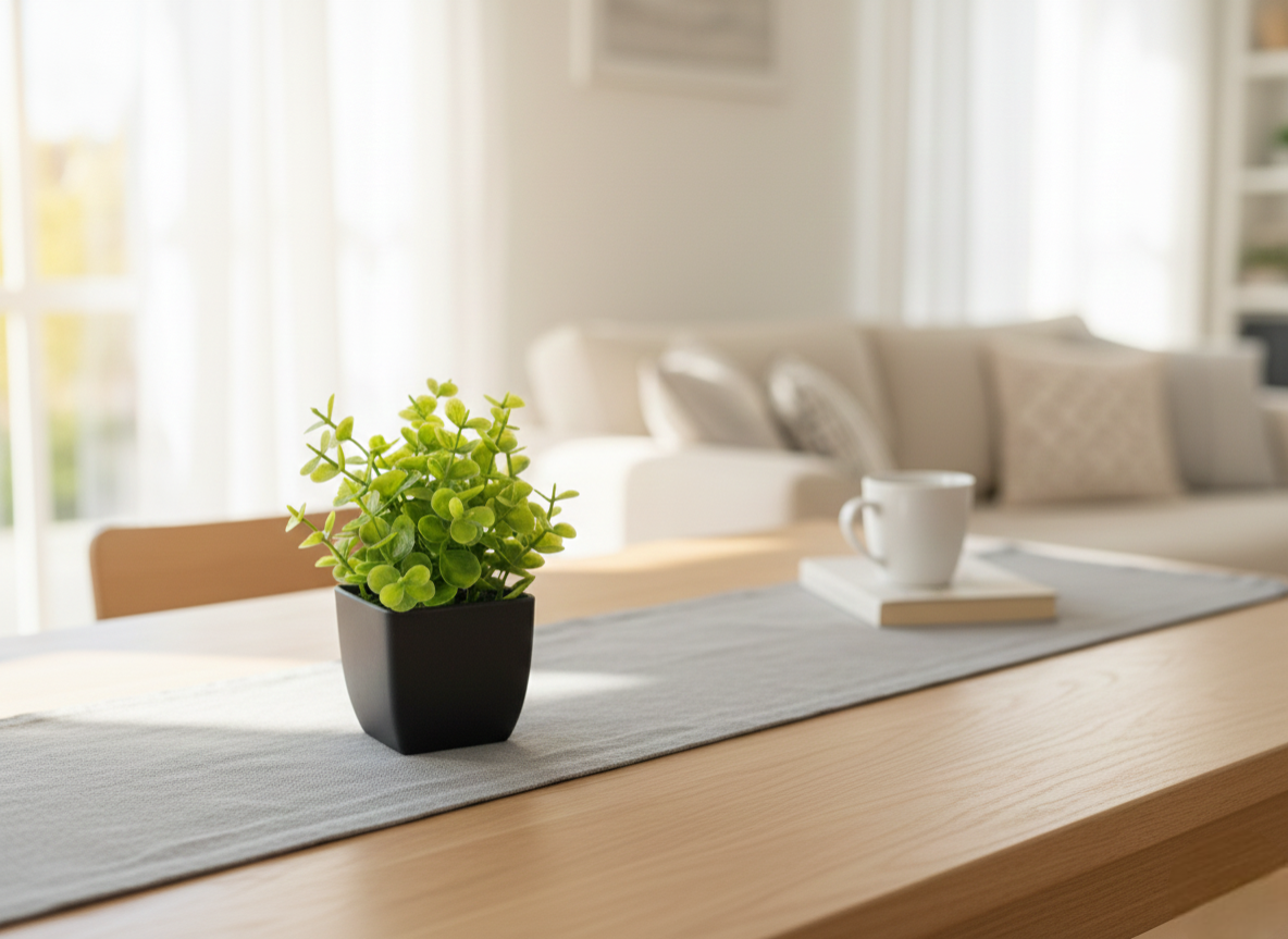 This stylish artificial plant brings a fresh, natural touch to any interior without the need for maintenance. Featuring vibrant green leaves with a realistic appearance, it is placed in a sleek matte black pot that complements modern, minimalist, and Scandinavian décor. Perfect for desks, shelves, windowsills, or coffee tables, this decorative plant adds warmth and elegance to any space.